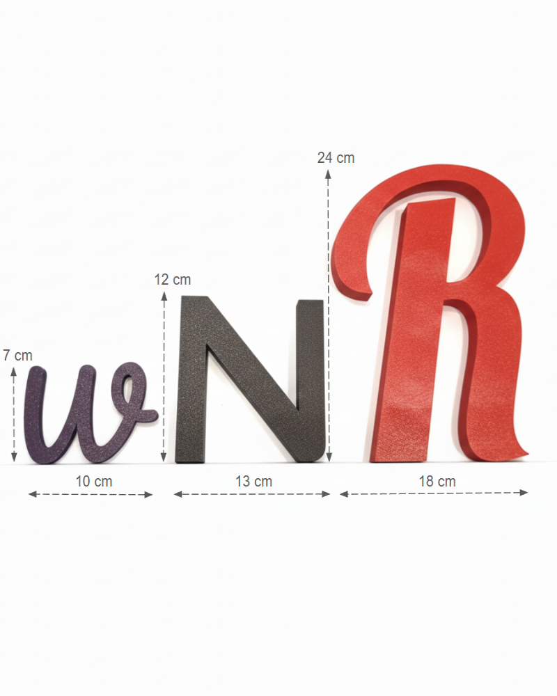 Skapa ditt eget budskap med individuella bokstäver! Välj små eller stora bokstäver, färg och storlek för varje bokstav.
