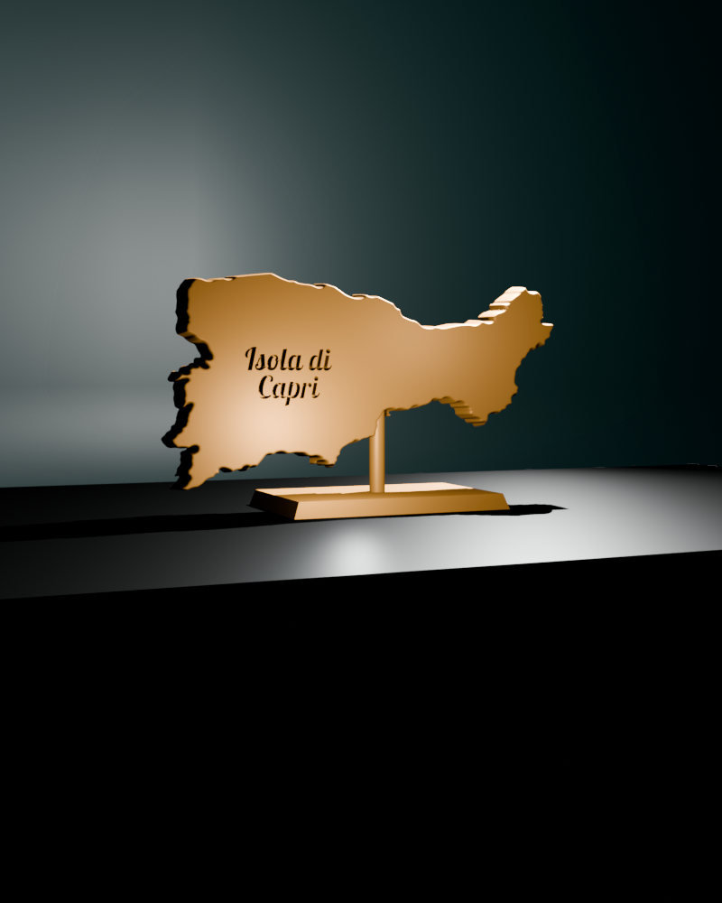 3D-Modell utav den Italienska favoritön Capri. Storleken är 28 cm bred, 13.6 cm hög och 1.5cm djup. Modellen kommer med 2st skruvhål på baksidan för att kunna hänga på väggen. Medföljer ett stativ och "fylle" för att täppa igen hålet om man vill ha den vägghängd. Total vikt ca 240g
