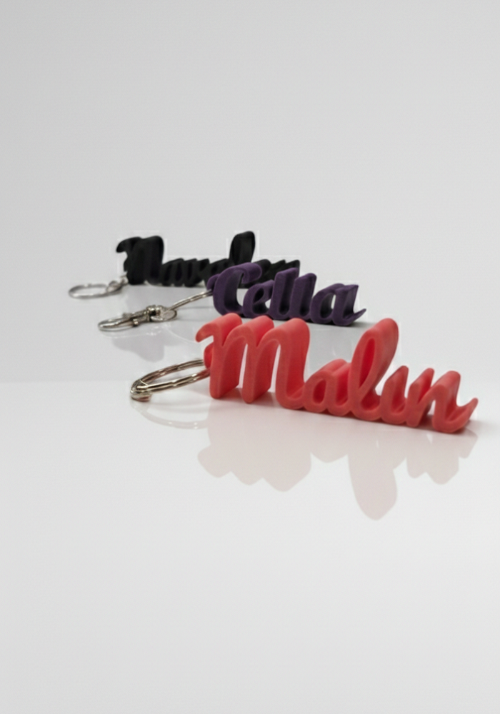 Obs saknar ni någon font så erbjuder vi hela Google Fonts utbud, följ länken för att se fler fonter: Google fonts, skriv direkt till oss på info@ns3d.se eller fyll i formuläret under sidan Kontakt med önskad font och produkt du vill använda den till. OBS inte alla fonter är bra att använda för namn-nyckelring, bokstäverna skall hänga ihop, då är skrivstil rekommenderat.